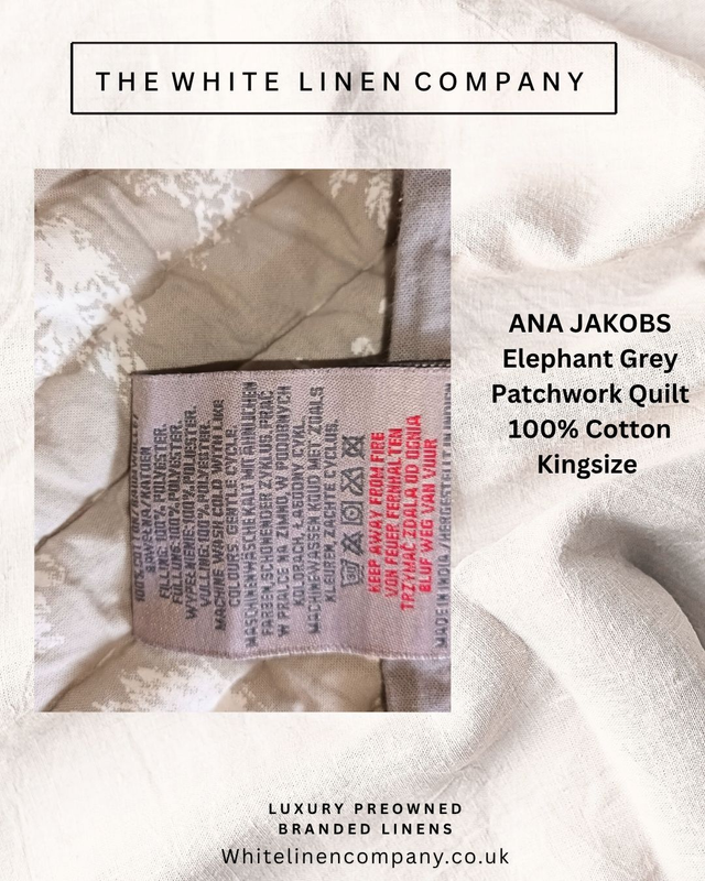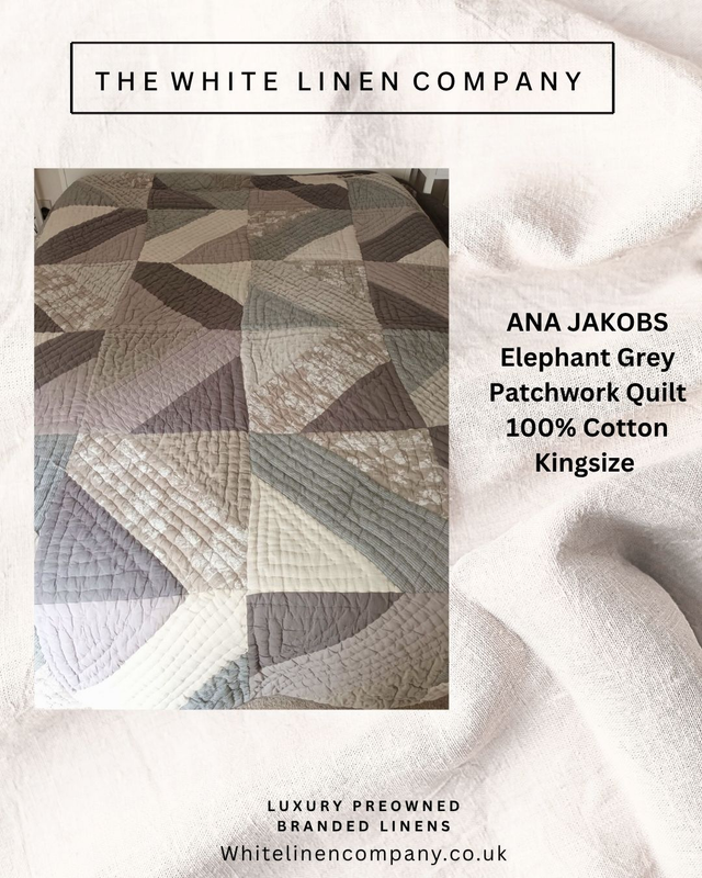 ANA JAKOBS Elephant Grey Patchwork Quilt - 100% Cotton - Double