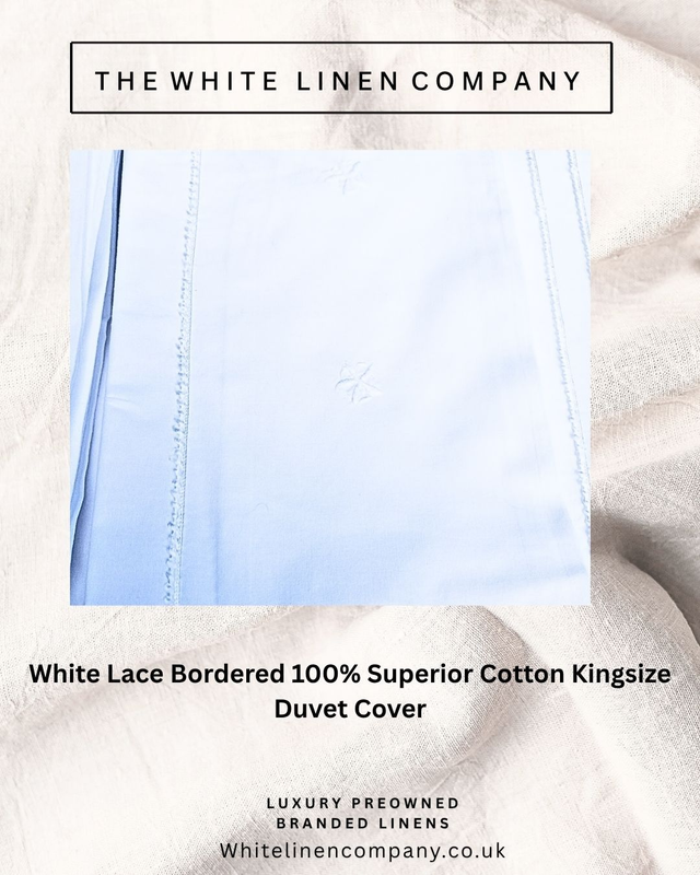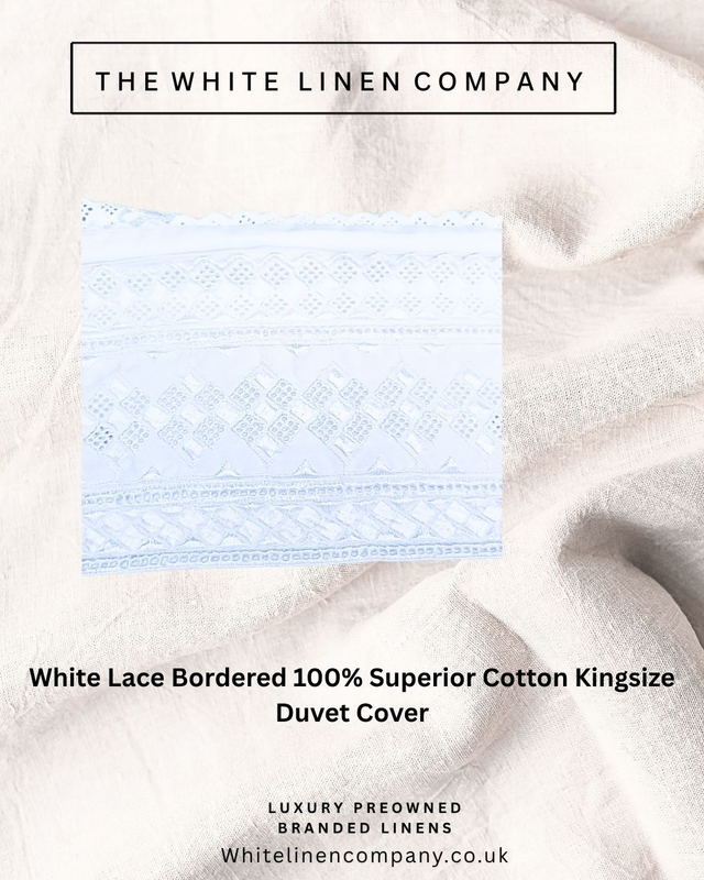 French Linen - Crisp White Lace Border Double 100% Cotton Duvet Cover