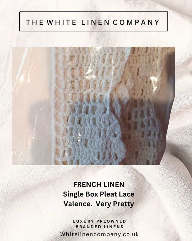 FRENCH LINEN VALENCE single - Box Pleated Lace Border. Very Pretty Delicate