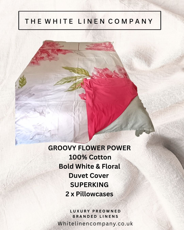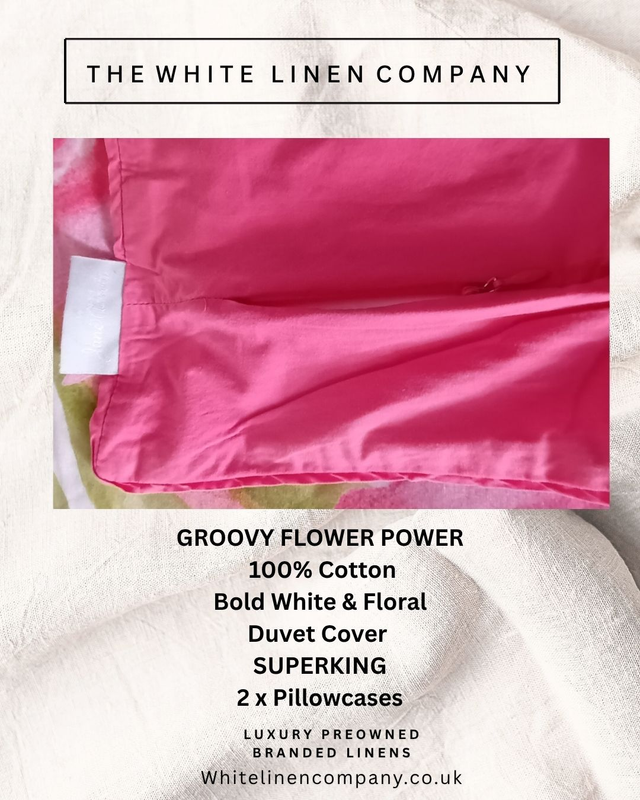 Groovy Pink Bold Flower Power 100% Cotton SUPERKING Duvet Cover - 2 Pillowcases
