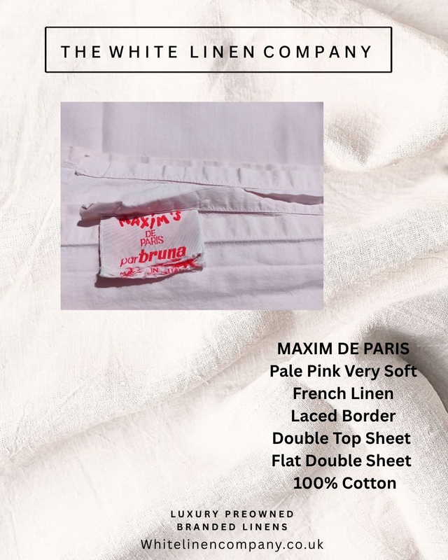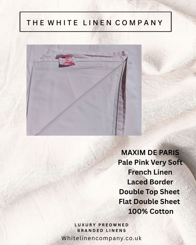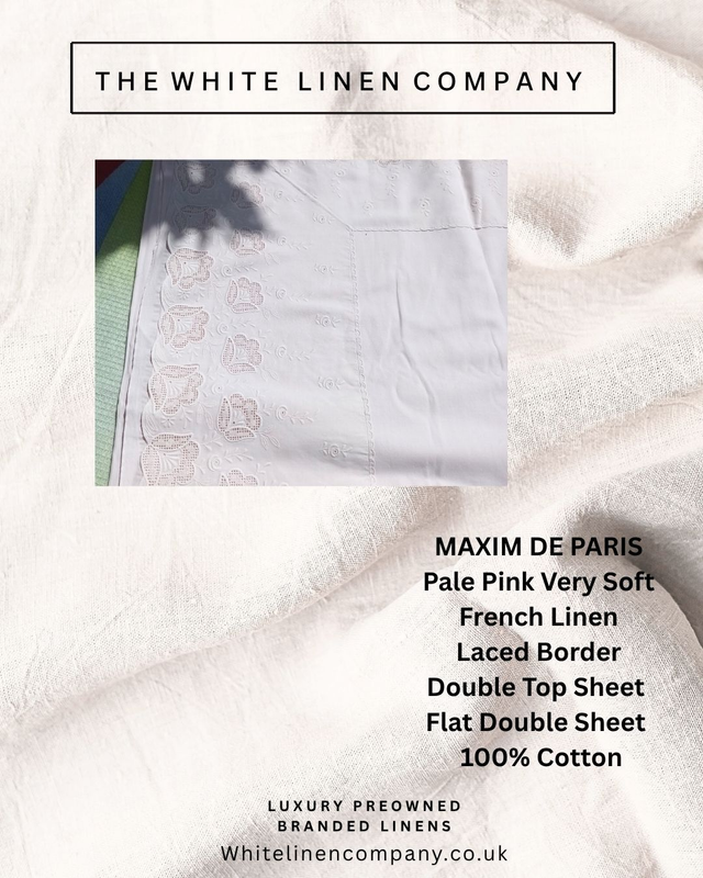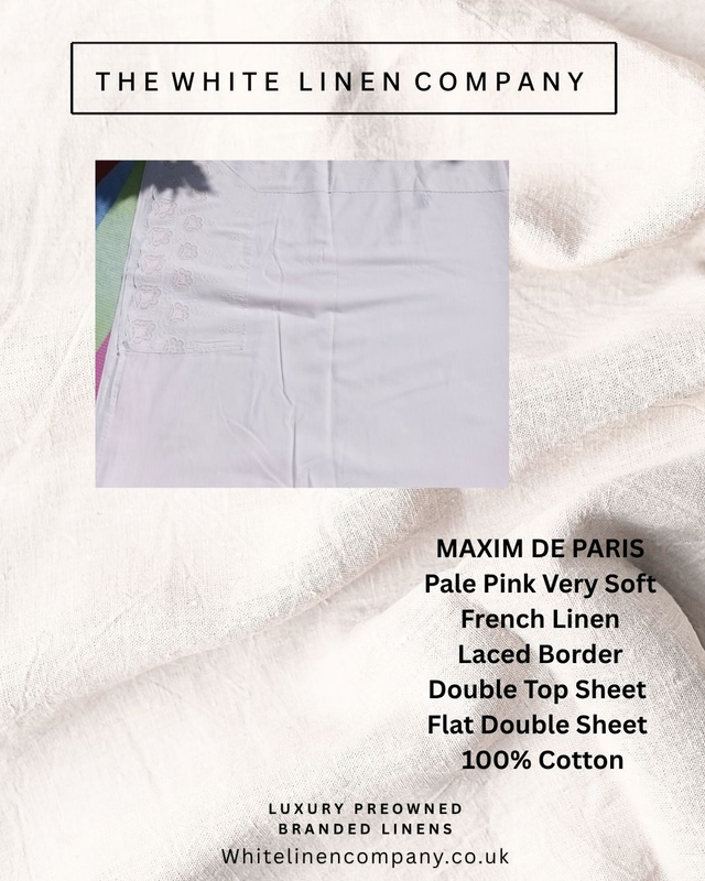 MAXIM DE PARIS French Lace Linen -2 FLAT SHEET DOUBLE 1 plain 1 lace 100% cOTTON