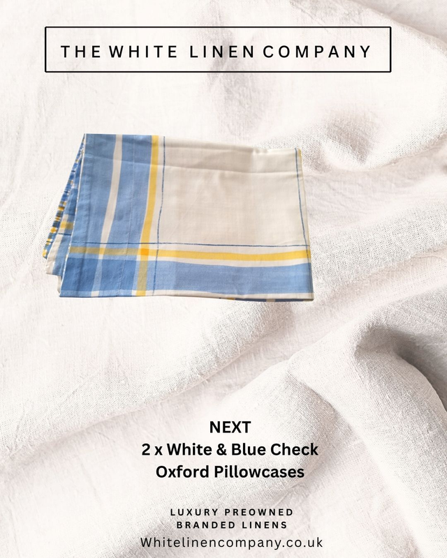 NEXT - Pair Blue Yellow White Check 100% Cotton Oxford Pillowcases